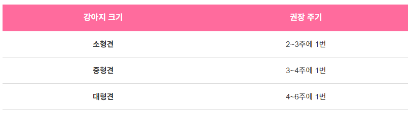 ✔️ 소형견은 2~3주, 중대형견은 3~6주 주기