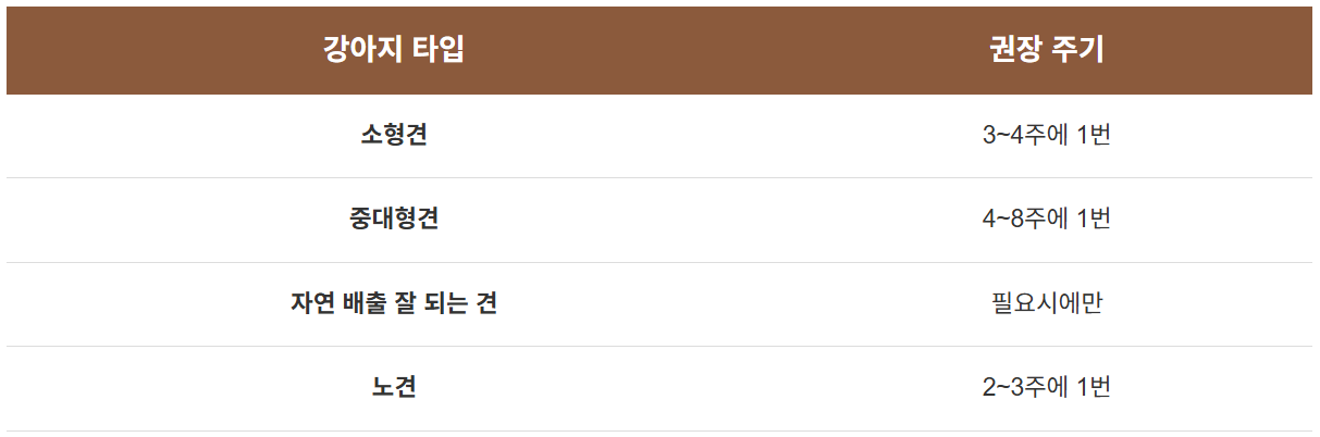 ✔️ 소형견은 3~4주, 중대형견은 4~8주 주기