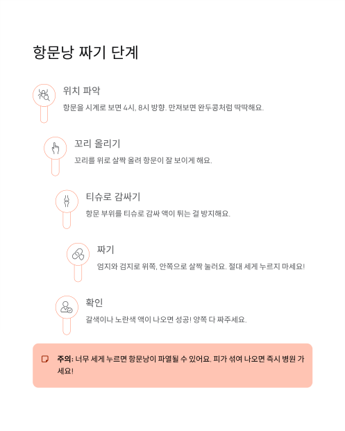갈색이나 노란색 액이 나오면 성공! 양쪽 다 짜주세요.