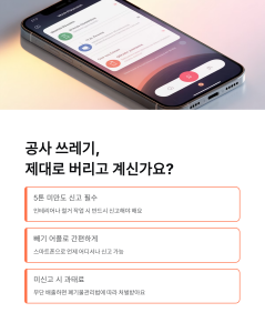 일반 쓰레기와 뭐가 다른가요? 일반 가정 쓰레기는 그냥 버려도 되지만, 공사로 인한 폐기물은 반드시 신고 후 배출해야 해요. 양이 적어도 마찬가지랍니다!