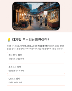 디지털 온누리상품권은 전통시장과 소상공인 매장을 활성화하기 위한 모바일 결제형 상품권이에요.