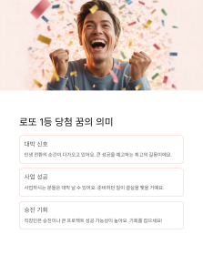 로또 1등 당첨 꿈은 정말 최고의 길몽이에요. 실제로 엄청난 행운이 찾아올 거예요. 사업하시는 분들은 대박 날 수 있고, 직장인은 승진이나 큰 프로젝트 성공할 수 있어요.