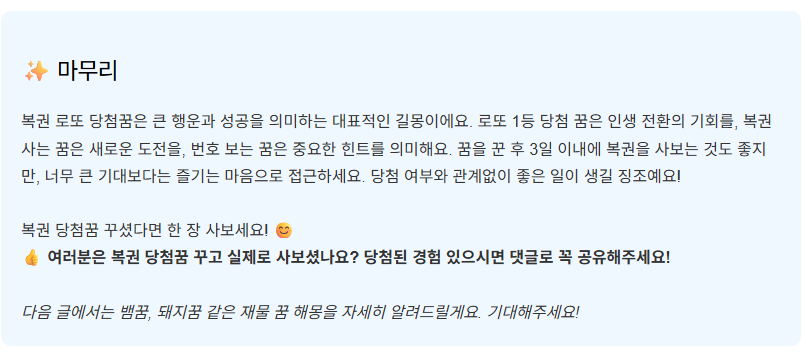 로또 당첨 꿈은 정말 좋은 꿈이에요. 큰 행운이 찾아온다는 의미가 있어요.