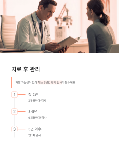치료 후에도 정기적인 추적검사가 필수예요. 재발 가능성이 있기 때문에 최소 5년간은 3~6개월마다 검사를 받아야 해요.