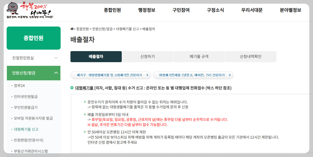 2025년 4월 5일 기준으로, 서울 서대문구에서 대형 폐기물(가구, 가전 등)을 버리는 방법을 간단히 정리했습니다.