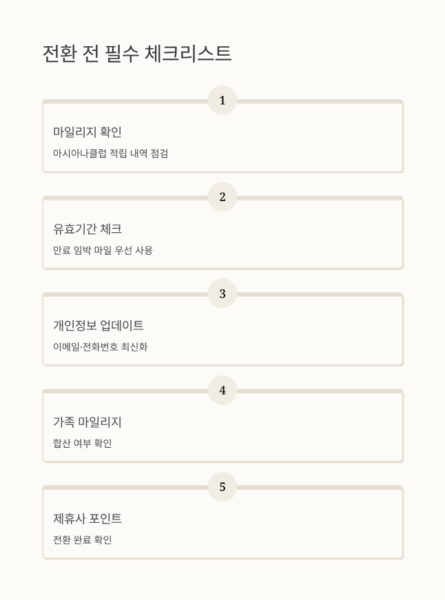 저는 작년에 미리 아시아나 홈페이지에서 개인정보 업데이트했어요. 연락처가 정확해야 전환 안내를 제대로 받거든요.