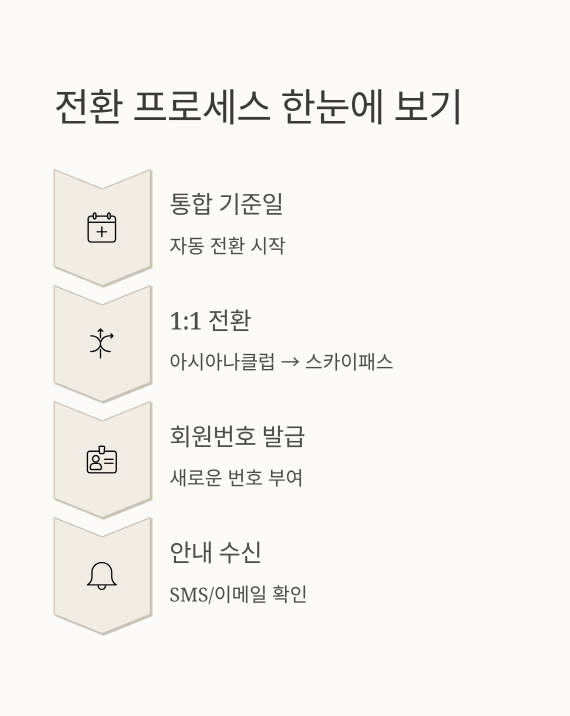 통합 후에는 아시아나 회원번호가 자동으로 스카이패스로 연동되지만, 미리 가입해두면 마일리지 관리가 편해요.
