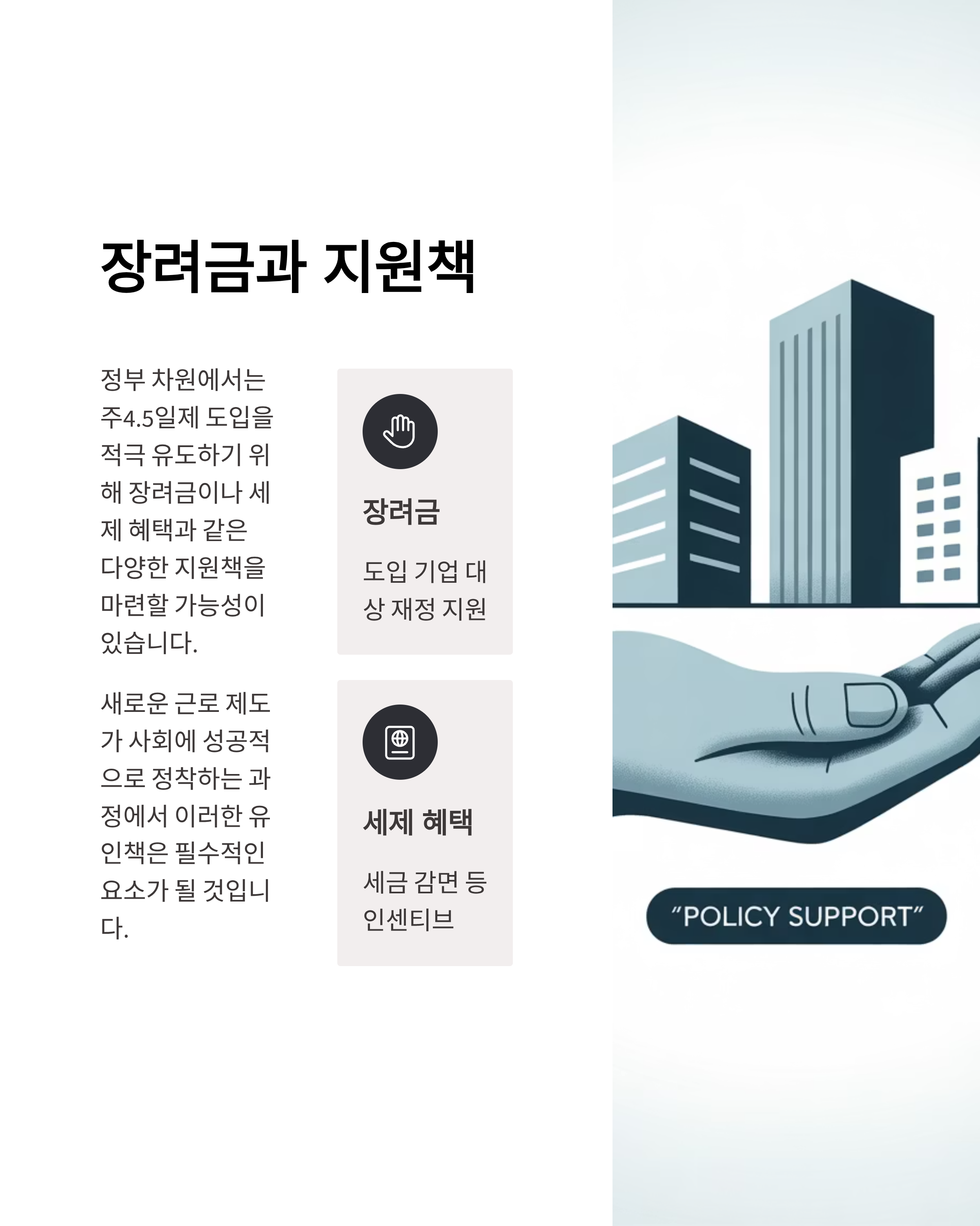 정부 차원에서는 제도 도입을 적극 유도하기 위해 장려금이나 세제 혜택 같은 지원책을 마련할 가능성도 거론되고 있습니다. 제도 정착 과정에서 이러한 유인책은 필수 요소가 될 수 있습니다.