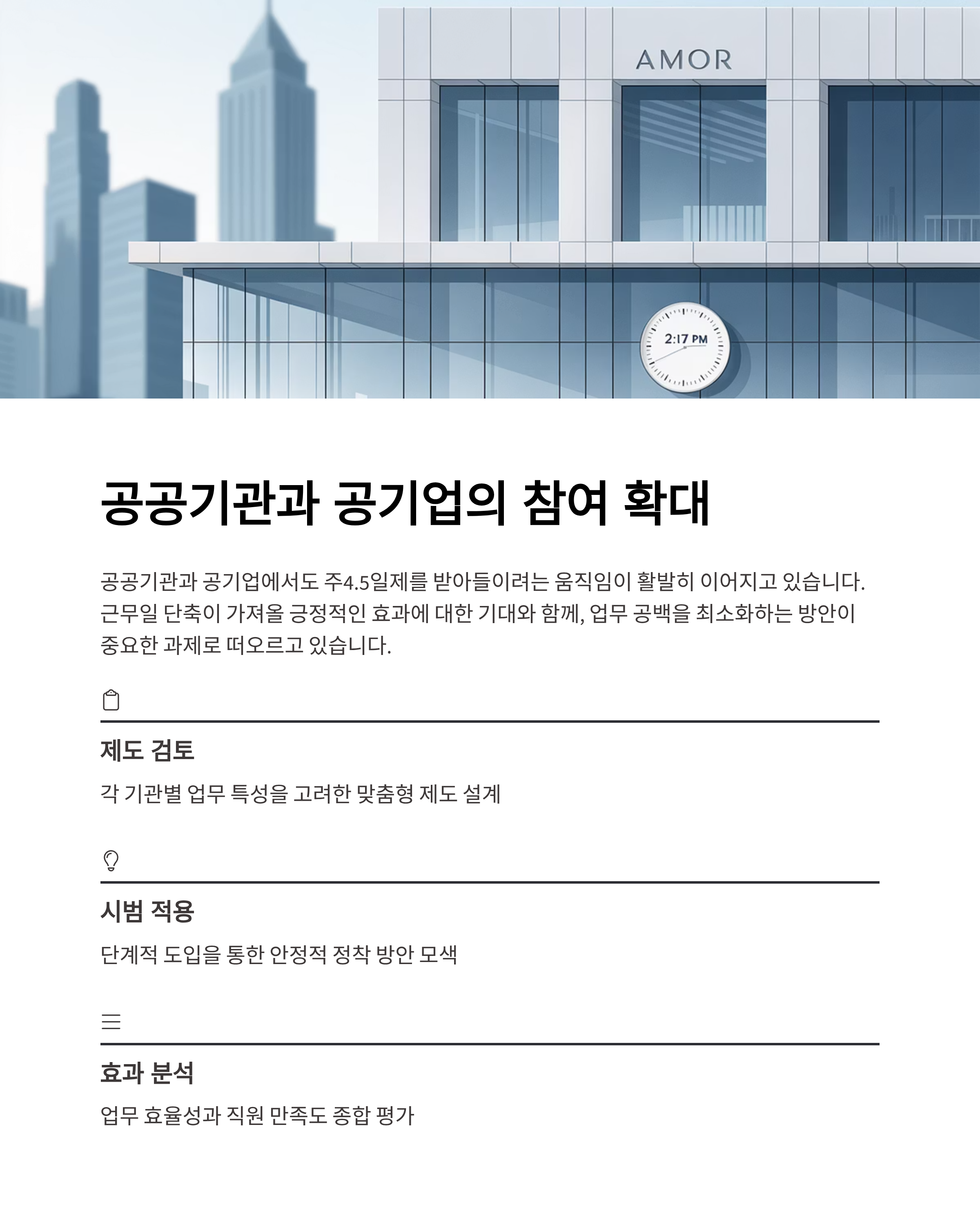 | 공무원/공공기관 | 시범 운영, 제도 정착 | 근무 만족도 향상 |