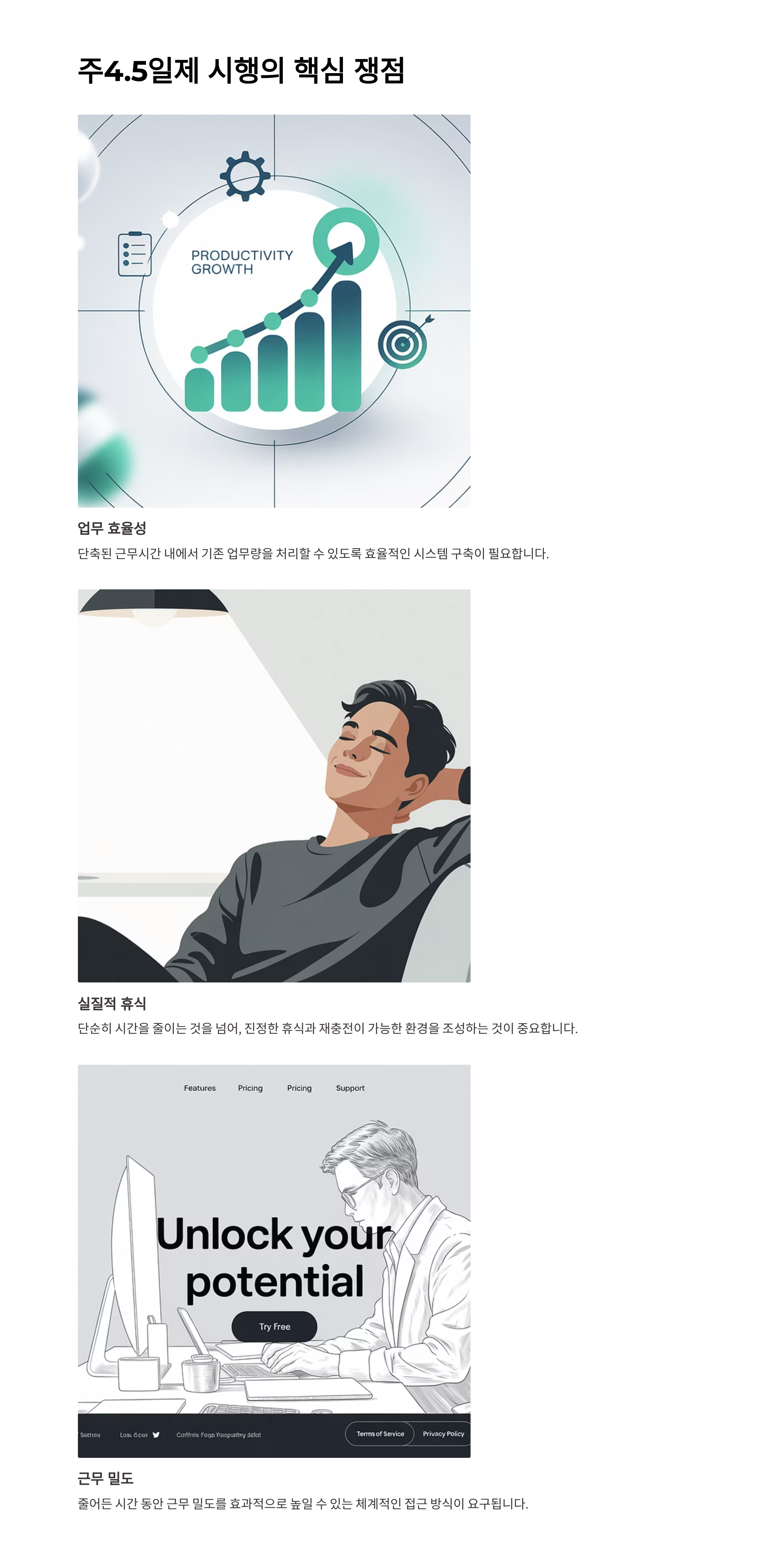 가장 중요한 문제는 업무 효율성과 실질적 휴식 보장입니다. 단순히 시간을 줄이는 것에서 끝나지 않고, 어떻게 근무 밀도를 높일지에 대한 고민이 필요합니다.