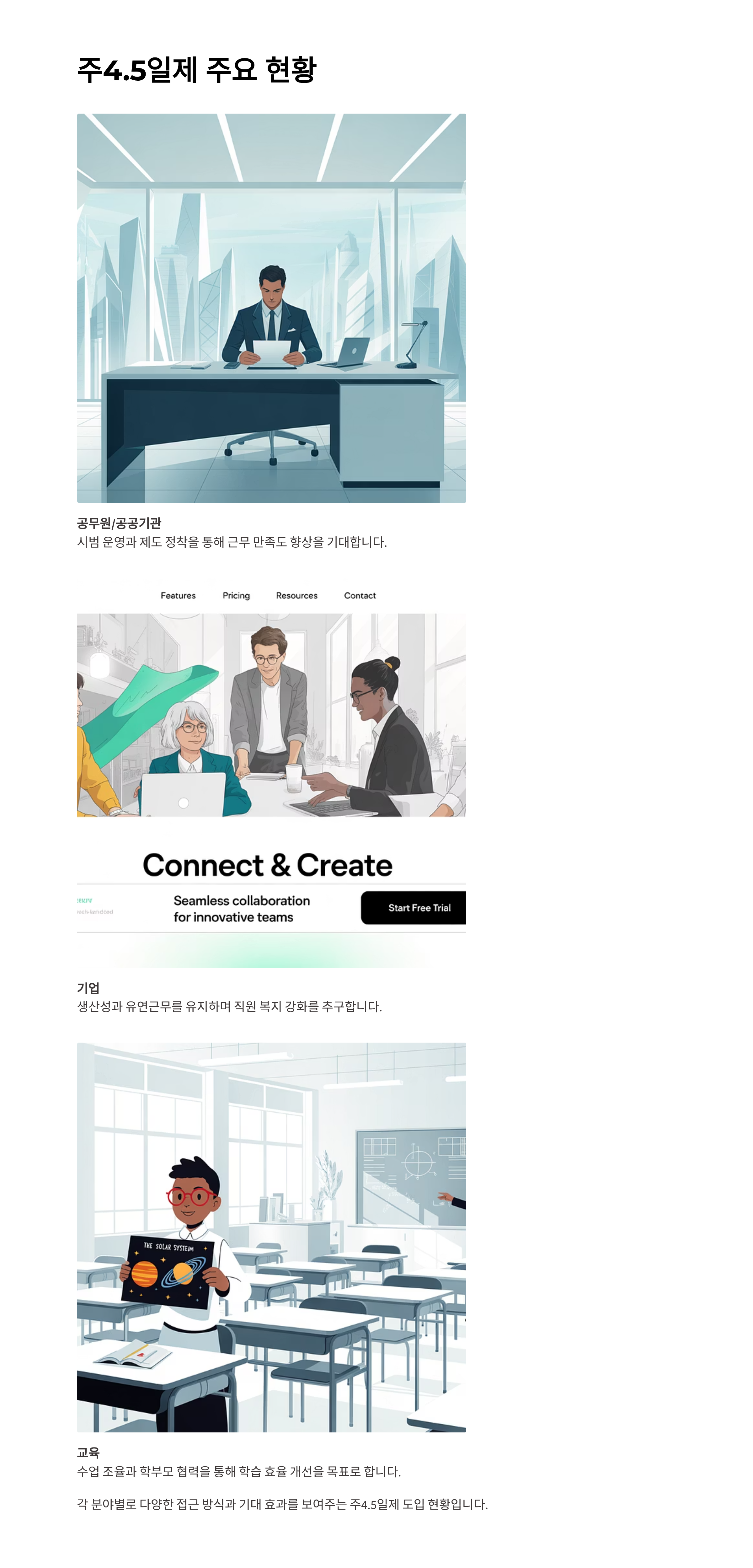 주4.5일제, 공무원제도, 기업복지, 근로시간단축, 교육제도