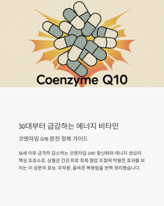 💌 "30세부터 급격히 감소하기 시작하는 우리 몸의 에너지 통장, 코엔자임 Q10. 미리 준비하는 사람만이 60대에도 20대의 활력을 유지할 수 있습니다. 오늘부터라도 늦지 않았으니까요."