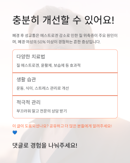 다음 글에서는 폐경기 여성 건강 관리 전반에 대해 다뤄볼게요!