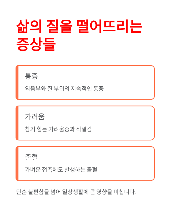 이 질염은 단순 분비물 변화뿐 아니라, 통증, 가려움, 출혈 등의 불편한 증상으로 이어져 삶의 질 저하를 일으키기도 합니다.