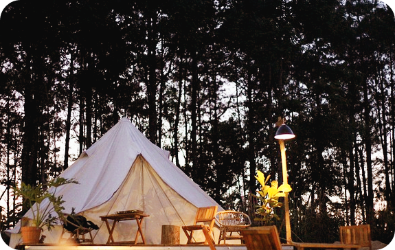 - 특징: 총 8개의 글램핑 객실이 있으며, 각 텐트마다 주방시설과 개별 바비큐 그릴, 전용 욕실이 갖춰져 있습니다. 텐트 사이 간격이 넓고, 바로 앞에 주차가 가능해 편리합니다. 중앙 수영장은 여름철 물놀이에 제격입니다.