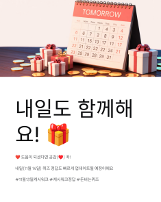 ❤️ 도움이 되셨다면 공감(♥) 꾹! 내일(11월 14일) 퀴즈 정답도 빠르게 업데이트될 예정이에요 🎁