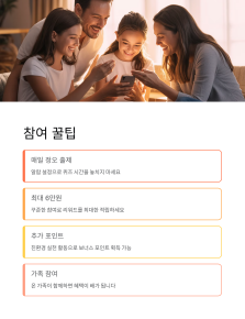 퀴즈 정답을 맞히면 최대 6만원 상당의 포인트를 받을 수 있어요. 하루 1분만 투자하면 꾸준히 리워드가 쌓이고, 현금처럼 사용 가능하며, 여러 친환경 실천 활동에도 추가 포인트가 지급됩니다. 가족 모두 함께 참여하면 더욱 좋은 혜택!
