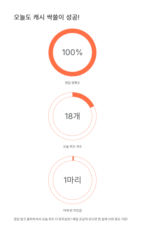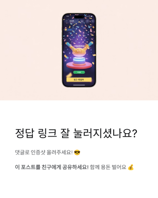 정답 링크 클릭하셔서 오늘 퀴즈 다 맞히셨죠? 저는 어제 이걸로 치킨 한 마리 값 벌었어요 ㅋㅋ
