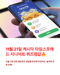 캐시닥 퀴즈정답, 타임스프레드 용돈퀴즈, 지니어트 퀴즈정답, 11월 21일 퀴즈, 용돈퀴즈 정답