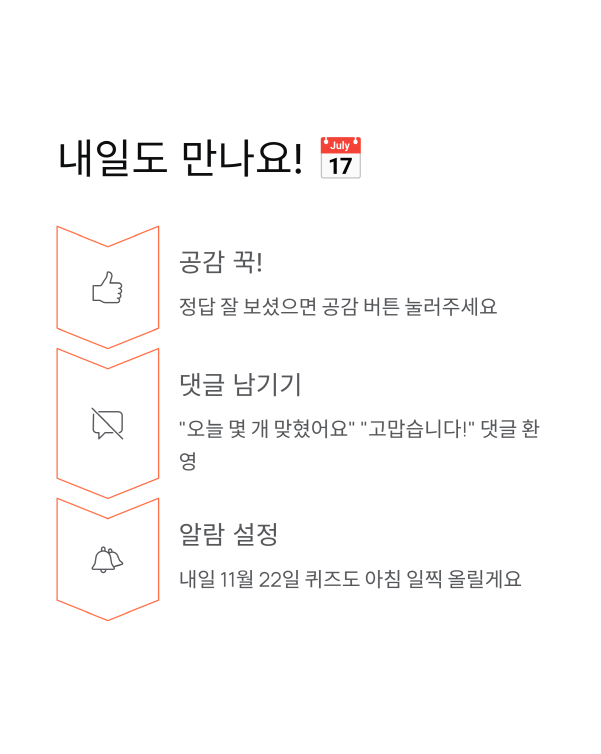 내일 11월 22일 퀴즈도 아침 일찍 올게요! 알람 맞춰두시고 내일 봐요~