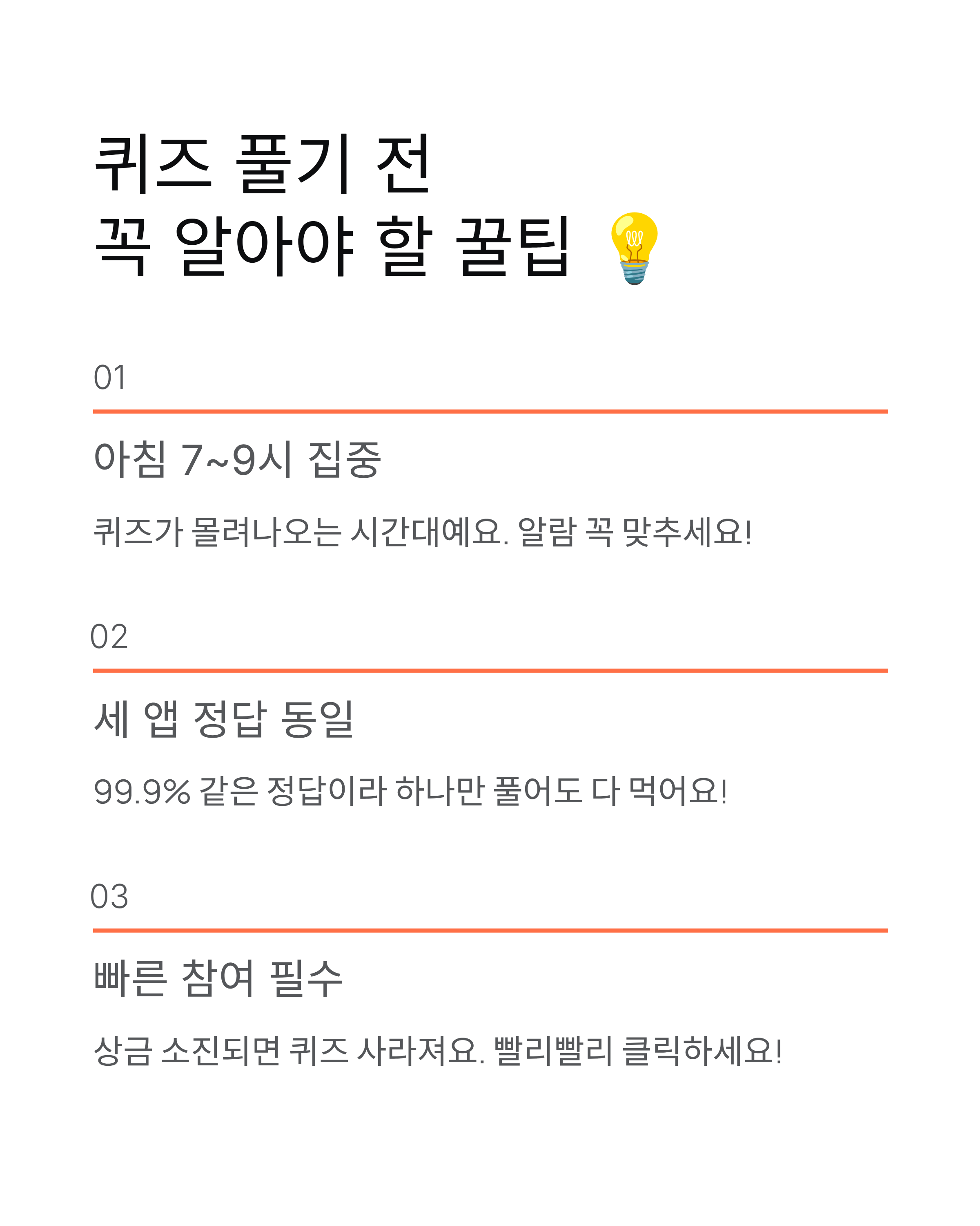 3. 상금 소진되면 퀴즈 사라져요 → 빨리빨리 클릭!