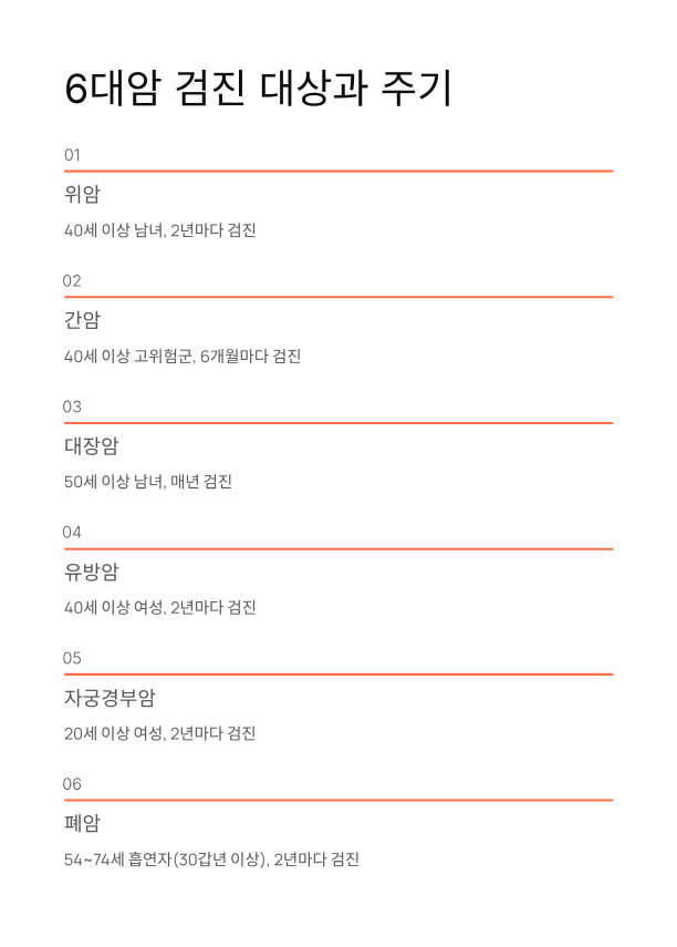 🔍 6대암 검진 대상자와 주기